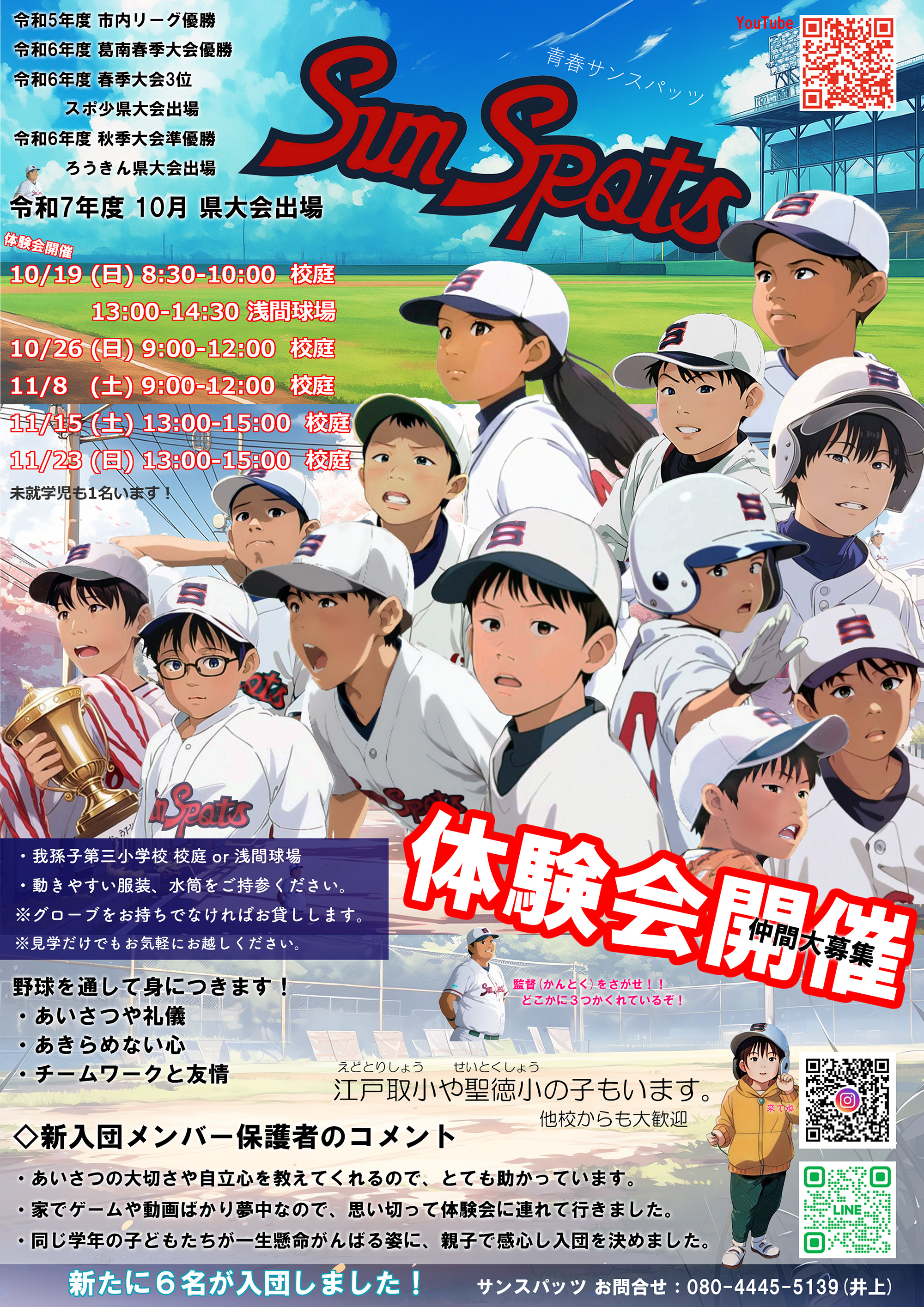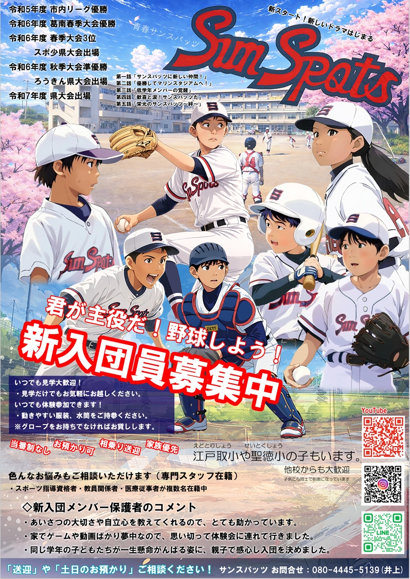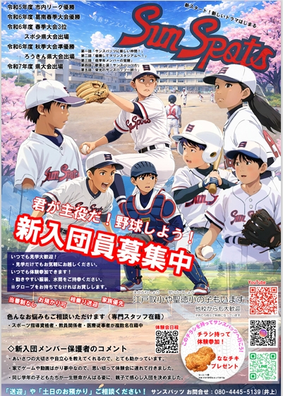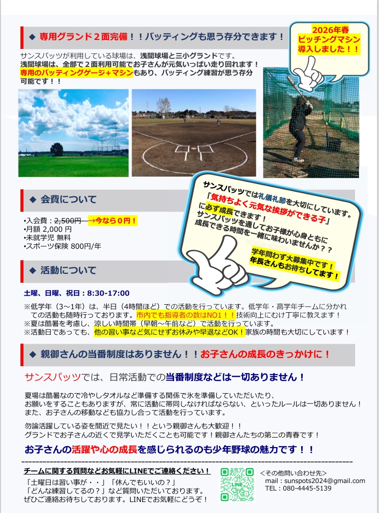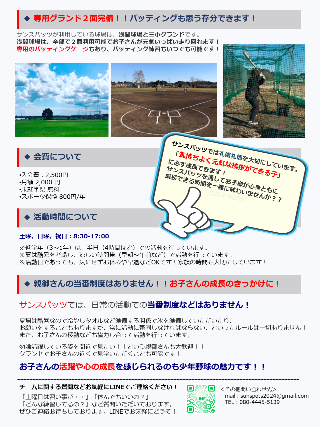 また、サンスパッツでは学年問わず、随時新入団選手歓迎しております!